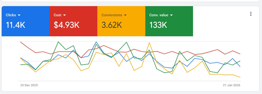 $4,930 IN AD SPEND LEADS TO $133,000 IN ECOMMECE SALES ON GOOGLE ADS WITHIN 30 DAYS